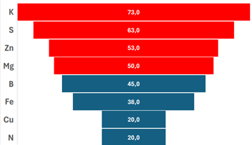 A Phylazonit vizsgálatai 2024-ben azt mutatták, hogy a hazai repceállományokban ősszel a kritikus tápelemhiányt a kálium, a kén, a cink és a magnézium elemek okozzák. A tőlevélrózsákból vett minták mutatott hiányok pótlására csak a lombtrágyázás ad gyors és értékmentő megoldást!